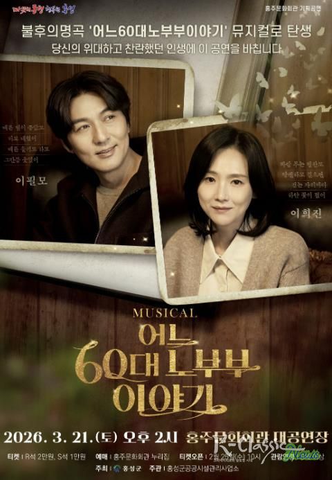 K-Classic News 기자 | 홍성군 홍주문화회관은 내달 21일 오후 2시, 중장년층을 넘어 모든 세대가 공감할 수 있는 따뜻한 가족 이야기를 그려낸 뮤지컬 ‘어느 60대 노부부 이야기’를 무대에 올린다.