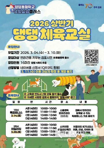 K-Classic News 기자 | 김포시는 2026년 반려문화교육인 ‘상반기 댕댕 체육교실’의 참여자를 오는 3월 10일까지 모집한다고 밝혔다.