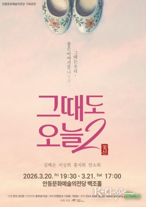 이러한 연극 프로그램의 시작을 알리는 작품으로 기획된 연극 ‘그때도 오늘 2 : 꽃신’은 3월 20일 오후 7시 30분과 3월 21일 오후 5시 안동문화예술의전당 백조홀에서 공연된다. 이번 작품은 '공연배달서비스 간다'의 대표 레퍼토리 작품 ‘그때도 오늘’의 두 번째 이야기로, 탄탄한 대본과 배우들의 진정성 있는 연기로 관객들에게 큰 사랑을 받고 있는 작품이다.