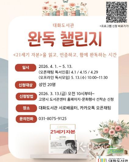 K-Classic News 기자 | 고양특례시 대화도서관에서는 시민들의 깊이 있는 독서 경험을 돕기 위해 ‘21세기 자본’을 함께 읽는 ‘완독 챌린지’를 운영한다.