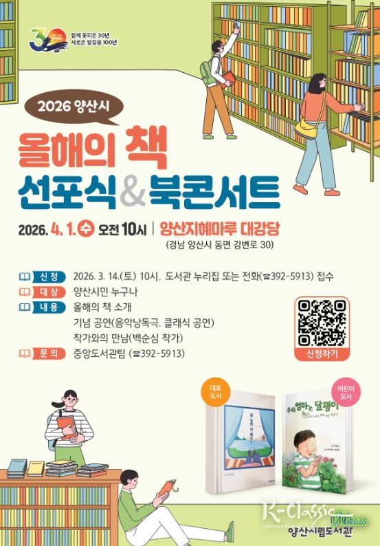 K-Classic News 기자 | 양산시립도서관은 오는 4월 1일 수요일 오전 10시, 지혜마루 대강당에서‘2026년 올해의 책 선포식 및 북콘서트’를 개최한다.
