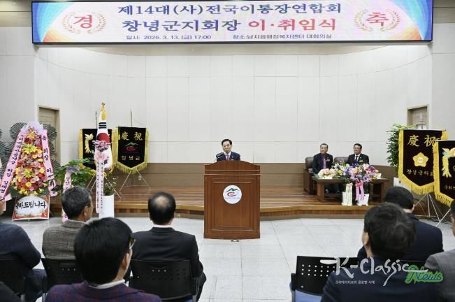 K-Classic News 기자 | 창녕군은 지난 13일, 남지읍 행정복지센터 2층 대회의실에서 ‘전국이통장연합회 창녕군지회장 이․취임식’을 개최했다고 밝혔다.