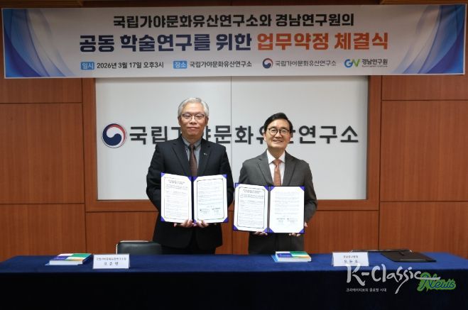 K-Classic News 기자 | 경남연구원과 국립가야문화유산연구소는 17일 국립가야문화유산연구소에서 경남 지역 문화유산의 체계적인 조사와 연구 협력 강화를 위해 업무협약을 체결했다.