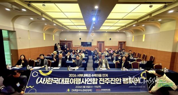 K-Classic News 기자 | 전북특별자치도문화관광재단은 4색이음 연계 관광상품 기획을 위한 팸투어를 진안에서 진행했다. 이번 팸투어는‘2026-2027 진안 방문의 해’를 맞아 진안군의 관광 활성화를 위해 지난 18일부터 19일까지 1박 2일간 한국대표여행사연합 임직원 27명을 초청해 진행됐다.