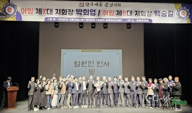 K-Classic News 기자 | 한국예총 문경지회는 2026년 3월 19일 18시 30분 문희아트홀에서 제8대 문경예총 지회장 이·취임식을 개최했다.