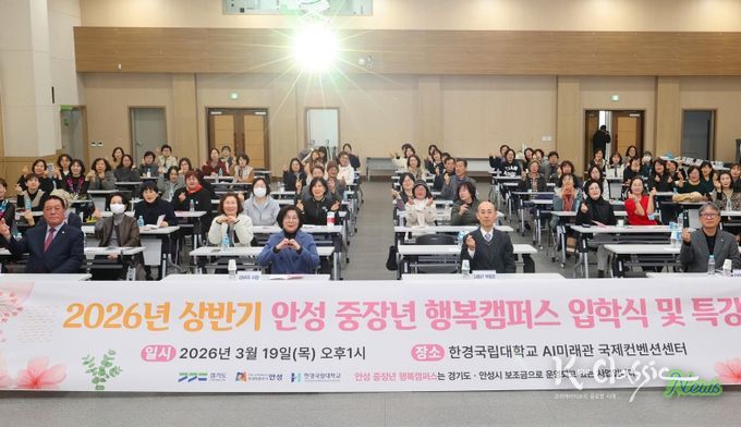 K-Classic News 기자 | 안성시는 3월 19일 오후 1시 한경국립대학교 미래융합기술연구센터 국제컨벤션센터에서 “2026년 안성 중장년 행복캠퍼스 상반기 정규과정 입학식을 성황리에 개최했다.