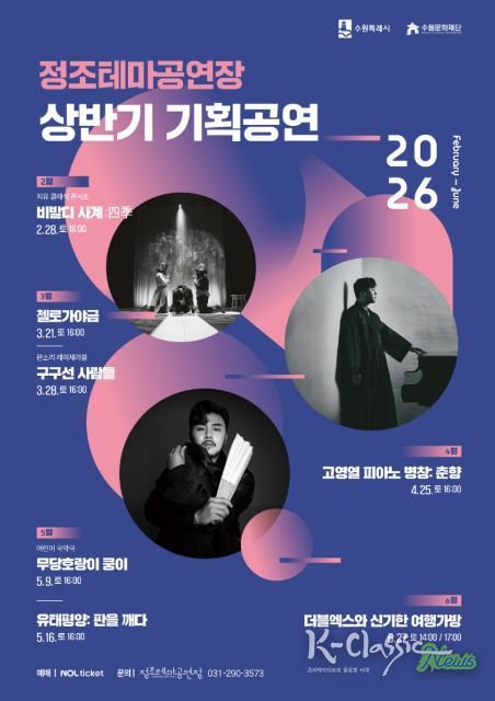 K-Classic News 기자 | 수원문화재단은 오는 4월부터 6월까지 정조테마공연장에서 전통예술의 현대적 확장을 주제로 한 기획공연 4편을 선보인다.