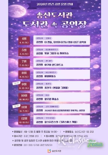 K-Classic News 기자 | 화성시문화관광재단 송산도서관은 오는 4월부터 12월까지 지역 주민들에게 풍요로운 문화 체험의 기회를 제공하는 연간 상설 공연 프로그램 '도서관 속 공연장'을 운영한다.