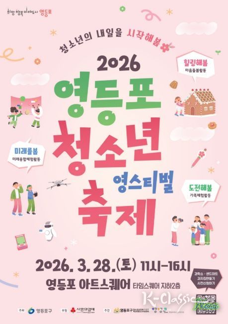 K-Classic News 기자 | 영등포구가 오는 3월 28일, 새 학기를 맞은 청소년들의 희망찬 출발을 응원하기 위해 영등포 아트스퀘어와 타임스퀘어 광장에서 청소년 축제 ‘영스티벌’을 개최한다고 밝혔다.