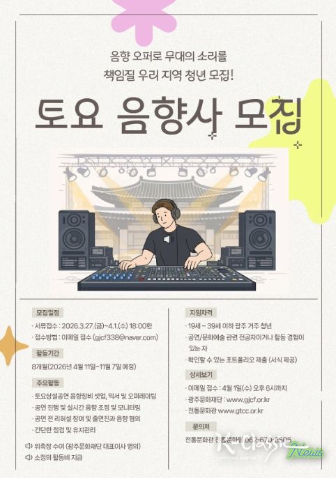 K-Classic News 기자 | 광주문화재단 전통문화관이 토요상설공연 무대의 생생한 소리를 책임질 2026 토요 음향사를 모집한다.