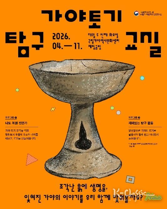 K-Classic News 기자 | 국가유산청 국립문화유산연구원 국립가야문화유산연구소는 4월부터 11월까지 총 6회에 걸쳐 매월 두 번째 주 화요일마다 국립가야역사문화센터 내 체험공방(경남 김해시)에서 체험형 교육 프로그램인 ‘가야 토기, 탐구교실’을 운영한다.