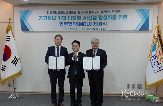 K-Classic News 기자 | 강원정보문화산업진흥원과 한국국토정보공사 공간정보연구원이 공간정보 기술과 디지털·AI 산업의 융합을 통한 지역경제 활성화와 관련 산업 진흥을 위해 업무협약을 체결했다. 이번 협약은 지역 중심의 공간정보 기반 디지털·AI 산업 활성화를 위한 협력체계를 확립하고, 양 기관의 전문성과 역량을 연계하기 위해 추진됐다.