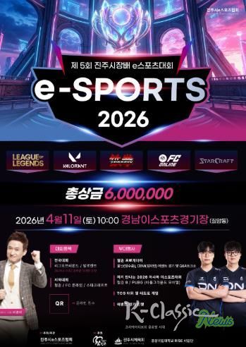 K-Classic News 기자 | 진주시는 오는 11일 경상국립대학교 칠암캠퍼스 100주년 기념관에 있는 경남 이(e)스포츠 상설경기장에서 ‘2026 진주 아마추어 e스포츠 대회’를 개최한다고 밝혔다.
