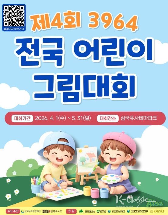 K-Classic News 기자 | 군위문화관광재단이 주최하는‘제4회 3964 전국 어린이 그림대회’가 올해부터 개최 시기와 운영 방식을 전면 개편하여 새롭게 찾아온다.