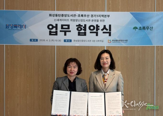 K-Classic News 기자 | 화성동탄중앙도서관은 2일 초록우산 경기1지역본부와 아동의 건강한 성장 발달을 지원하고 지역 사회의 양육 부담을 경감하기 위해 ‘신세계이마트 희망장난감도서관’ 운영 업무협약을 체결했다.
