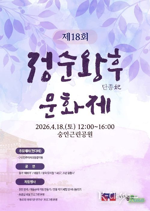 K-Classic News 기자 | 왕을 잃고도 자리를 지켰던 왕비의 시간이 동망봉에서 다시 흐른다. 종로구(구청장 정문헌)는 4월 18일 12시부터 16시까지 숭인근린공원에서 '정순왕후문화제'를 연다.