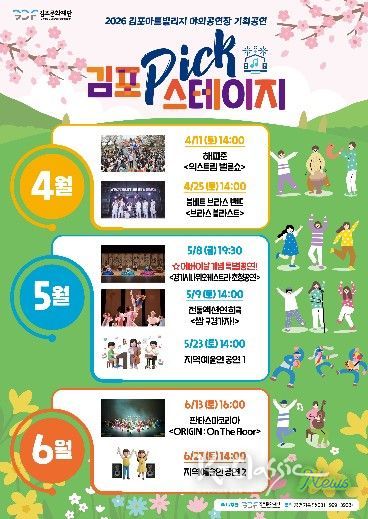 K-Classic News 기자 | (재)김포문화재단은 오는 4월 11일부터 김포아트빌리지 야외공연장에서‘2026 김포아트빌리지 야외공연장 기획공연 '김포 PICK 스테이지'’를 개최한다고 밝혔다.
