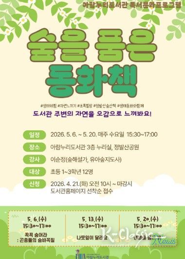 K-Classic News 기자 | 고양특례시 아람누리도서관이 오는 5월, 어린이들이 책 속 이야기를 자연 현장에서 직접 체험하며 생태 감수성을 키우는 독서문화 프로그램 ‘숲을 품은 동화책’을 운영한다.