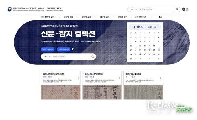 K-Classic News 기자 | 국가보훈부는 임시정부와 관련한 신문과 잡지의 기사를 통해 임시정부의 활동상을 쉽게 확인할 수 있는 웹콘텐츠 ‘임시정부 신문‧잡지 컬렉션’을 임시정부수립 기념일인 11일 공개한다고 밝혔다.