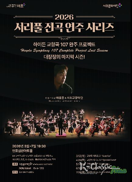 전성수 서초구청장은 “하이든 교향곡 전곡 연주는 서초 문화예술 자산이 빚어낸 뜻깊은 결실”이라며 “앞으로도 서초의 문화예술 역량을 바탕으로 구민의 일상 속 품격 있는 공연 문화를 넓혀가겠다”고 밝혔다.