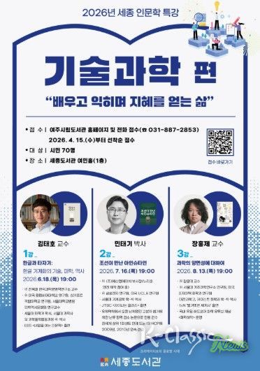 K-Classic News 기자 | 여주시는 오는 6월 18일부터 8월 13일까지 세종도서관에서 '2026년 세종 인문학 특강'‘기술과학 편’을 3회 운영한다.