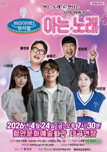함안문화예술회관 관계자는 “이번 공연은 개그콘서트 ‘아는 노래’ 코너의 공감과 재미를 무대 공연으로 확장한 작품이다”며 “군민들이 웃음과 감동을 함께 느끼며 일상 속 활력을 얻는 시간이 되길 바란다”고 말했다.