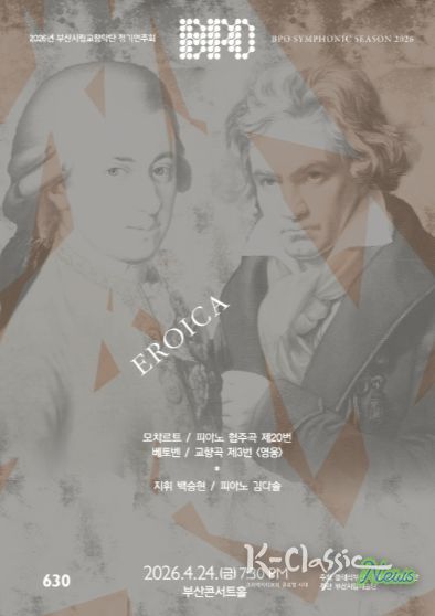 K-Classic News 기자 | 부산시립교향악단이 오는 4월 24일 오후 7시 30분, 부산콘서트홀에서 제630회 정기연주회 '에로이카(EROICA)'를 개최한다. 이번 공연은 고전주의의 균형에서 출발해 낭만주의의 확장으로 나아가는 흐름 속에서, 불안과 긴장을 넘어서는 인간의 의지를 조명하는 무대로 마련된다.