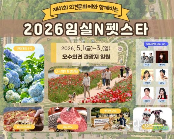 군은 오는 5월 1일부터 3일까지 임실 오수의견관광지 전역에서 제41회 의견문화제와 연계한‘2026 임실N펫스타’를 개최한다고 밝혔다.