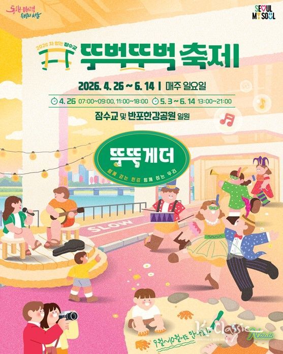 서울시는 4월 26일부터 6월 14일까지 8주간 매주 일요일 잠수교와 반포한강공원 일원에서 “함께 걷는 한강, 함께 하는 우리”라는 콘셉트로 '2026 차 없는 잠수교 뚜벅뚜벅 축제'를 개최한다.