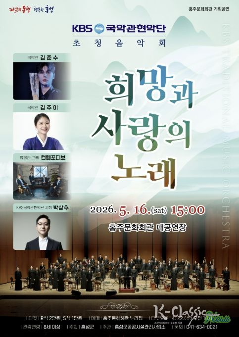 K-Classic News 기자 | 홍성군 홍주문화회관은 오는 5월 16일 오후 3시, 가정의 달 특별 기획으로 'KBS국악관현악단 초청음악회 - 희망과 사랑의 노래'를 무대에 올린다.