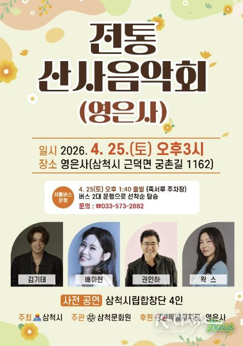 K-Classic News 기자 | 삼척시는 4월 25일 근덕면 영은사에서 자연과 전통이 어우러진 '전통 산사 숲속 음악회'를 개최한다고 밝혔다.