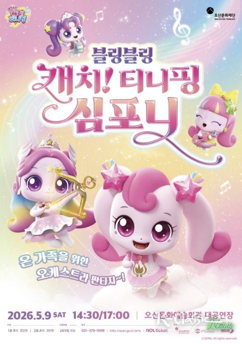 K-Classic News 기자 | 오산문화재단은 어린이날을 맞아 온 가족이 함께 즐길 수 있는 오케스트라 공연 ‘블링블링 캐치! 티니핑 심포니’를 선보인다고 밝혔다. 이번 공연은 인기 애니메이션 ‘캐치! 티니핑’ 시리즈의 OST를 오케스트라 라이브로 감상할 수 있는 무대로, 어린이뿐 아니라 가족 단위 관람객들에게 특별한 문화 경험을 제공할 예정이다.