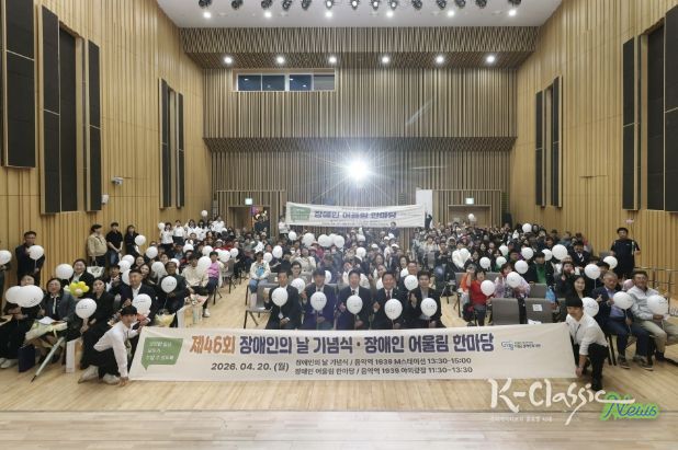 K-Classic News 기자 | 가평군은 20일 가평군장애인복지관 주관으로 ‘제46회 장애인의 날 기념식 및 화합 행사’를 개최했다. 음악역1939에서 열린 이번 행사에는 장애인과 시설·단체 관계자, 지역 주민 등 400여 명이 참석해 의미 있는 소통의 시간을 가졌다.