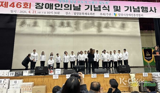 K-Classic News 기자 | 밀양문화관광재단은 21일 밀양문화체육회관에서 열린 ‘제46회 장애인의 날 기념식’에서 발달장애인 합창단 ‘이루다 합창단’의 올해 첫 공연을 선보였다고 밝혔다.
