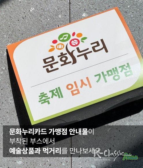 문화누리카드는 ‘축제 임시 가맹점’ 안내물이 부착된 부스에서만 사용할 수 있으며, 자세한 사항은 광주문화누리 블로그에서 확인할 수 있다.