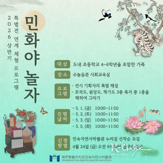 K-Classic News 기자 | 제주특별자치도 민속자연사박물관(관장 박찬식)이 5월 연휴 기간 민화 체험 프로그램 ‘민화야 놀자'를 운영한다.