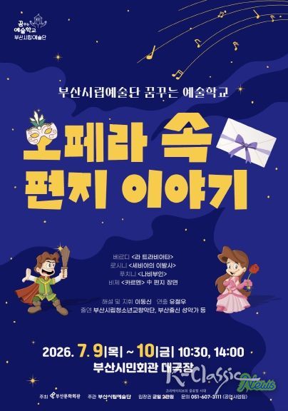연주는 부산시립청소년교향악단이 맡으며, 이동신 교수의 지휘와 함께 더해질 해설은 관객의 이해를 돕고 공연의 재미를 한층 높일 예정이다. 공연은 오는 7월 9일(목)과 10일(금) 이틀간 오전 10시 30분, 오후 2시 하루 2회씩 총 4회에 걸쳐 부산시민회관에서 열린다. 현재 부산시내 초·중·고등학생을 대상으로 관람 예약이 진행 중이다.