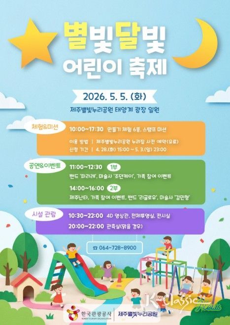 K-Classic News 기자 | 제주별빛누리공원은 어린이날을 맞아 5월 5일 오전 10시 공원 내 태양계 광장에서 ‘2026 별빛달빛 어린이 축제’를 개최한다.