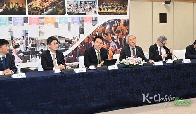 K-Classic News 기자 | 오세훈 서울시장은 24일 오후 2시, 서울시청 간담회장에서 (사)한국예술문화단체총연합회 서울시연합회와 ‘문화 매력 도시 서울’ 조성을 위한 업무협약을 체결하고 문화예술계의 의견을 청취했다.