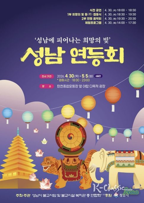 K-Classic News 기자 | ‘2026 성남 연등회’가 오는 4월 30일부터 5월 5일까지 엿새간 분당 탄천 야탑 다목적광장(탄천종합운동장 앞)에서 열린다.