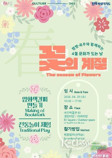 K-Classic News 기자 | 전주시 어진박물관은 오는 29일 4월 ‘문화가 있는 날’을 맞아 ‘꽃의 계절’을 주제로 한 체험프로그램을 운영한다고 27일 밝혔다.