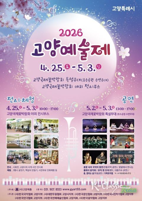 K-Classic News 기자 | 고양특례시의 봄을 수놓는 지역 예술 축제 ‘2026 고양예술제’가 오는 5월 3일까지 고양국제꽃박람회 특설무대와 야외 전시부스에서 개최된다.