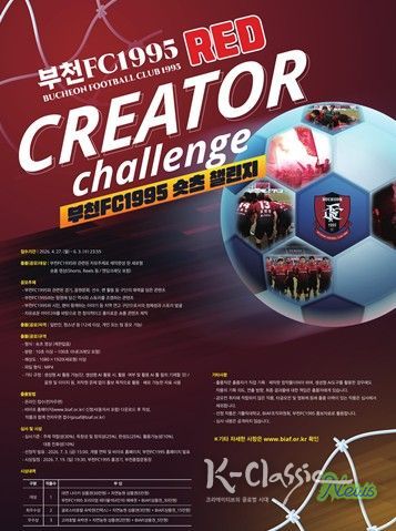 K-Classic News 기자 | 제28회 부천국제애니메이션페스티벌(BIAF2026)은 가톨릭대학교 RISE 사업단 지역협력센터, BIAF, 부천FC1995와 협력하여 시민 참여형 공모전 ‘부천FC1995 레드 크리에이터 챌린지(부천FC1995 숏츠 챌린지)’를 오는 4월 27일부터 개최한다.