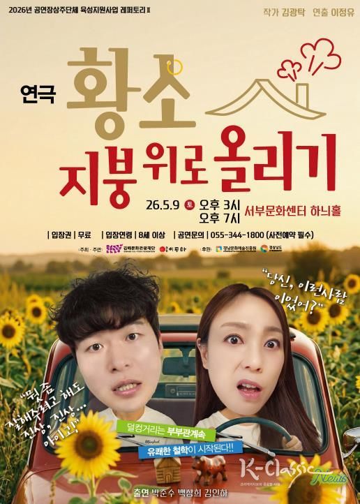 K-Classic News 기자 | (재)김해문화관광재단 김해서부문화센터는 경남문화예술진흥원이 주관하는 ‘2026 공연장상주단체 육성지원사업’에 선정되어, 오는 5월 9일 두 번째 레퍼토리 공연 연극 '황소, 지붕위로 올리기'를 선보인다.