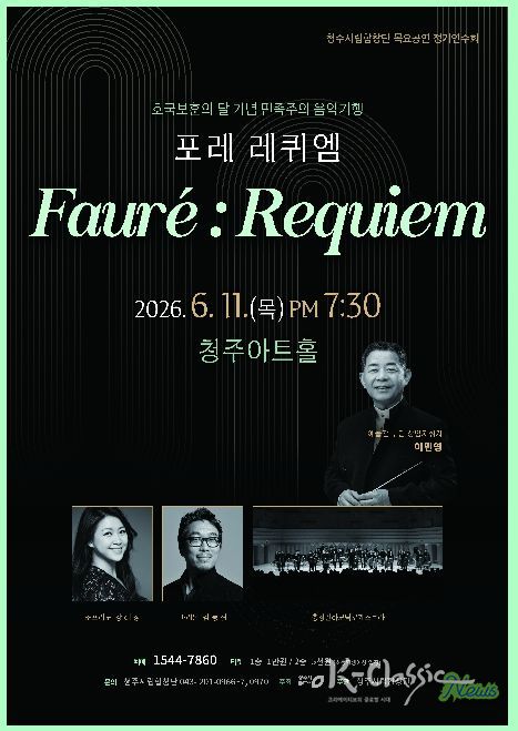 K-Classic News 기자 | 청주시립합창단은 6월 11일 오후 7시 30분 청주아트홀에서 호국보훈의 달 기념 민족주의 음악여행 ‘포레 레퀴엠’을 선보인다고 29일 밝혔다.