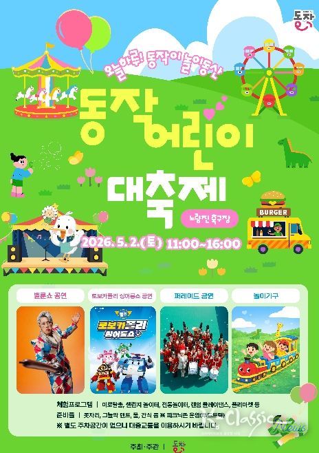 K-Classic News 기자 | 동작구가 어린이날을 맞아 어린이와 가족이 함께 즐기는 ‘2026 동작어린이대축제’를 개최한다고 밝혔다.