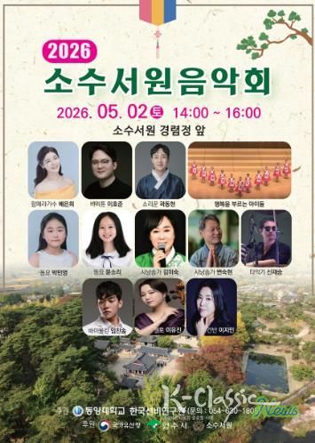 K-Classic News 기자 | 영주시는 오는 5월 2일 오후 2시, 유네스코 세계유산인 소수서원에서 역사와 예술이 어우러지는 ‘소수서원 음악회’를 개최한다고 밝혔다.