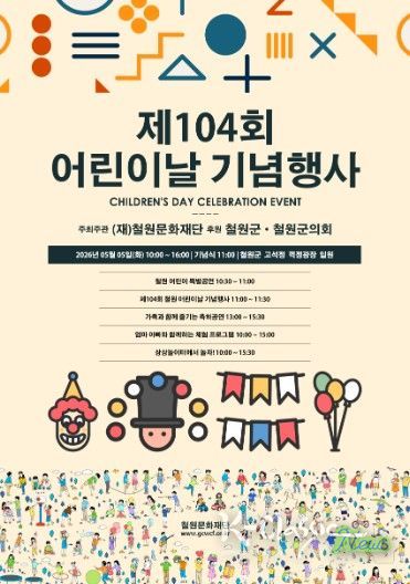 K-Classic News 기자 | (재)철원문화재단은 오는 5월 5일 어린이날을 맞아 고석정 일원에서 ‘제104회 어린이날 기념행사’를 개최한다고 밝혔다.