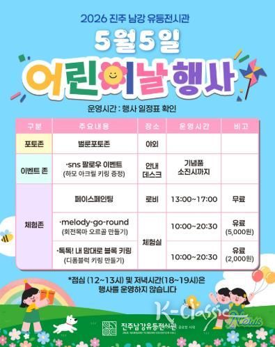 K-Classic News 기자 | 진주시는 다가오는 5월 가정의 달과 어린이날을 맞아 박물관·미술관 등의 문화시설에서 다채로운 문화 체험 행사를 개최한다고 밝혔다.