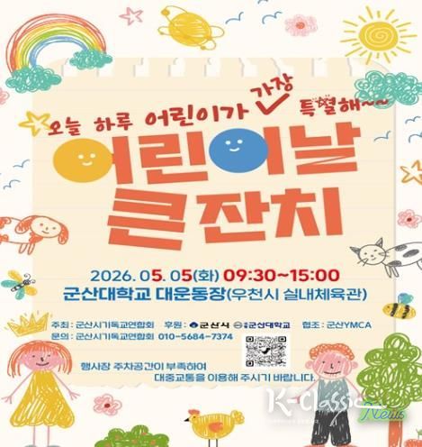 K-Classic News 기자 | 군산시는 5월 5일 어린이날을 맞아 지역 어린이와 가족들을 위한 다채로운 행사를 월명실내체육관과 군산대학교에서 동시에 개최한다.